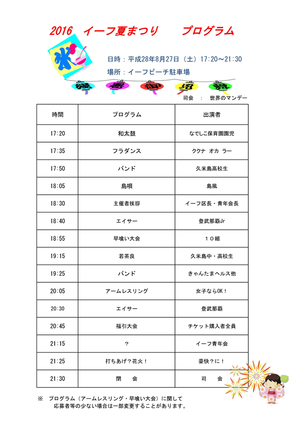 2016年8月27日(土)イーフ夏まつり2016 / 久米島・イーフビーチ公共駐車場