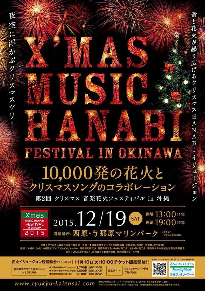 - 沖縄では唯一となる冬の花火イベントが、今年は西原・与那原マリンパークで開催! 「沖縄」ならではの新しいX’MASイベントとして音と花火が繰り広げる花火フェスティバルです!