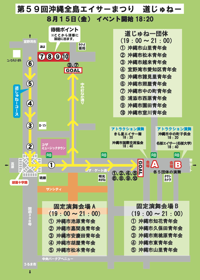 8月15日(金)18:20~21:00 初日 道じゅねー(胡屋十字路周辺)