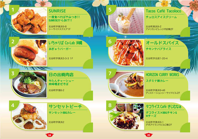 - 北谷町美浜エリア(サンセットビーチ・北谷公園野球場前広場・観覧車前広場・フィッシャリーナエリア)