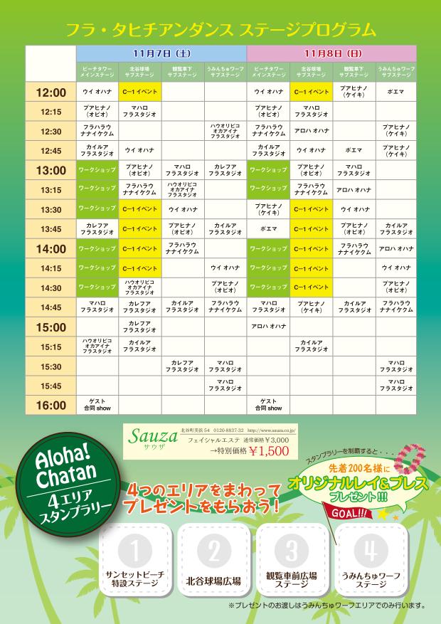 ※フラ・タヒチアンダンスは、サンセットビーチ・エリアのメインステージの他、北谷球場エリアのサブステージ、観覧車エリアのサブステージ、うみんちゅワープのサブステージでも開催されます。