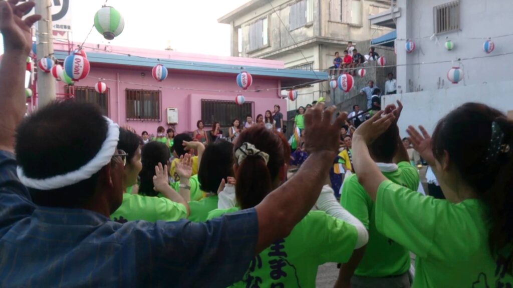 - 男性陣が豪快なクイチャーを踊り、一年の豊作と豊漁、子孫繁栄を祈願します。
