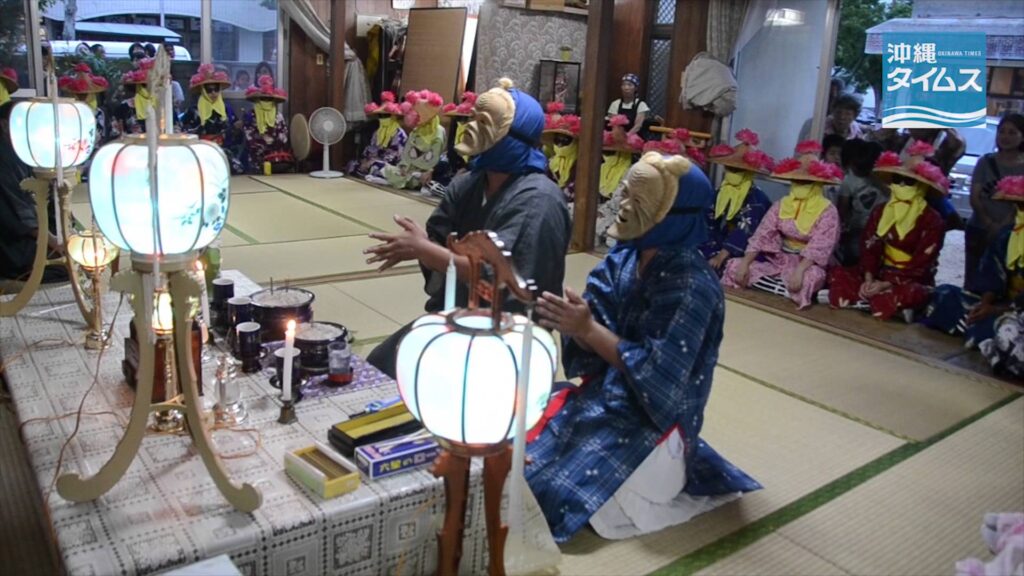- 旧盆時期に、仮面・仮装の集団が呼ばれた家々を訪れて、歌舞を披露したり、あの世とこの世の珍問答が繰り広げます。