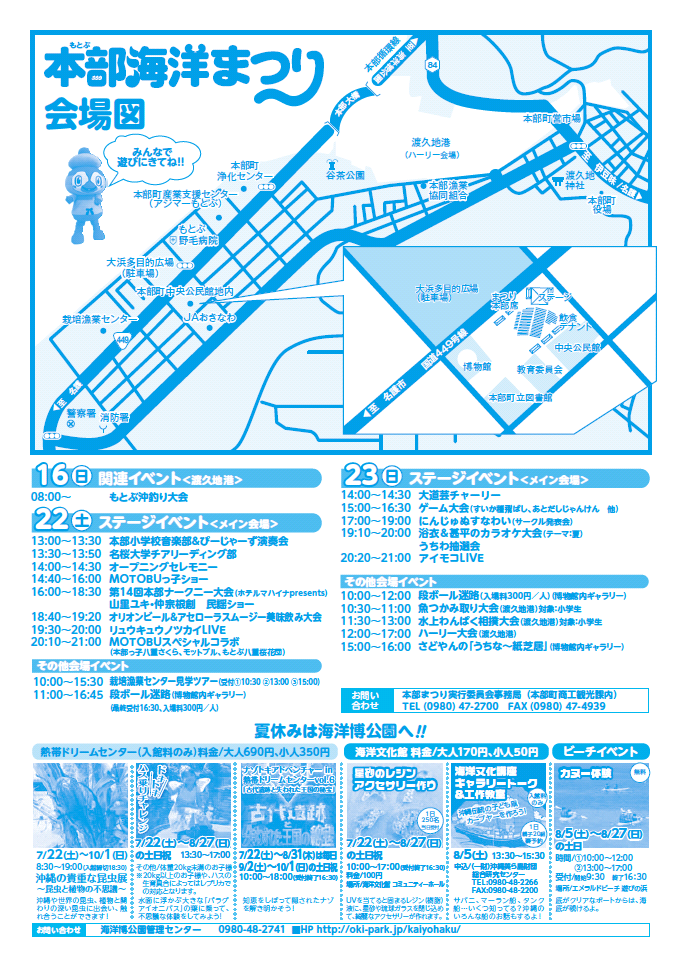 - 本部まつり実行委員会事務局(本部町商工観光課内) Tel:0980-47-2700
