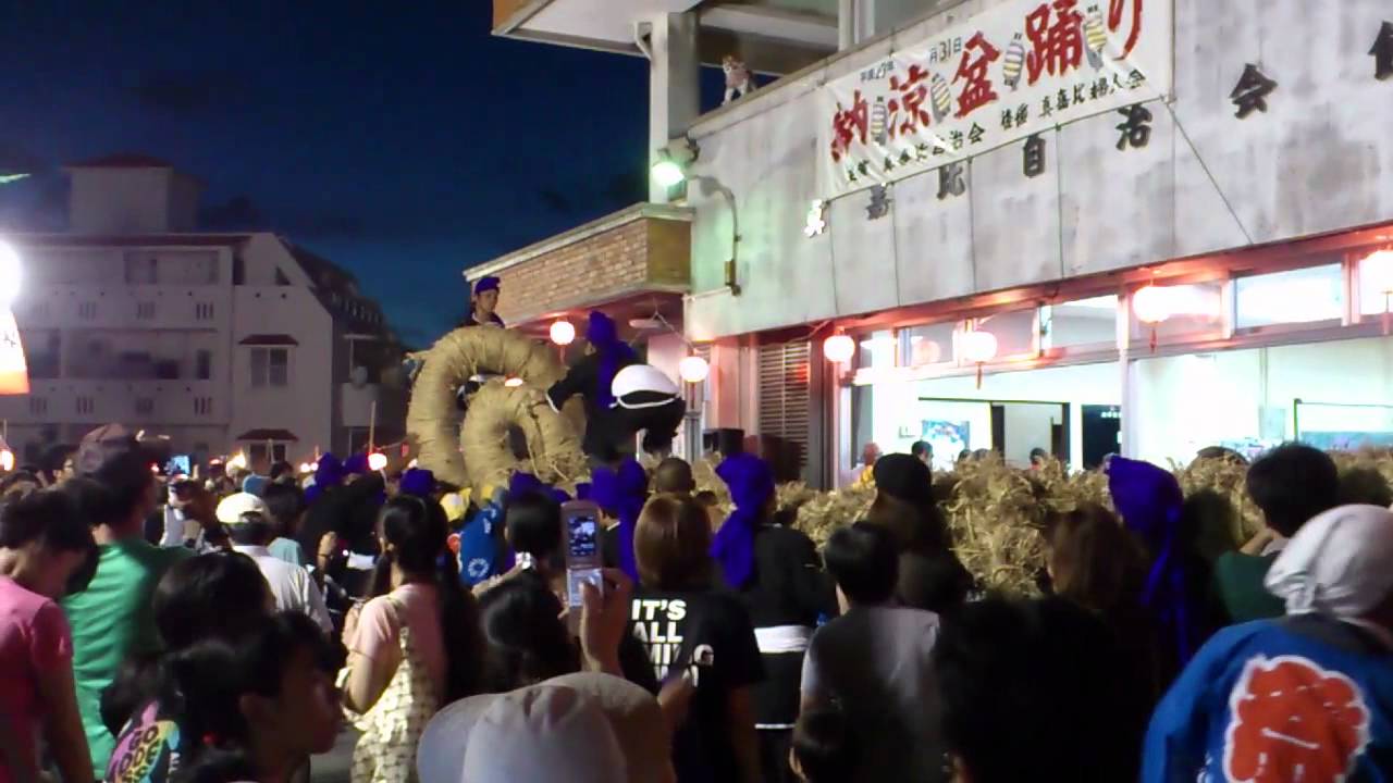 - 真嘉比地域の活性化を目的とした伝統行事で、旗頭、盆踊り、綱引きなどが行われます。綱引きは、旗頭ガーエーの後、参加者が東西に分かれて催されます。