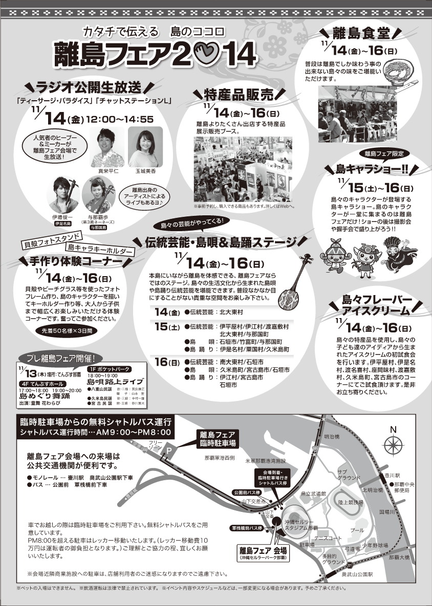 - 離島フェア開催実行委員会事務局(沖縄県離島振興協議会内) Tel:098-963-8191
