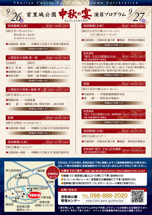- 首里城公園 首里城正殿前御庭の特設ステージにて、かつて中国皇帝の使者「冊封使」をもてなした冊封七宴のひとつ「中秋の宴」を再現!