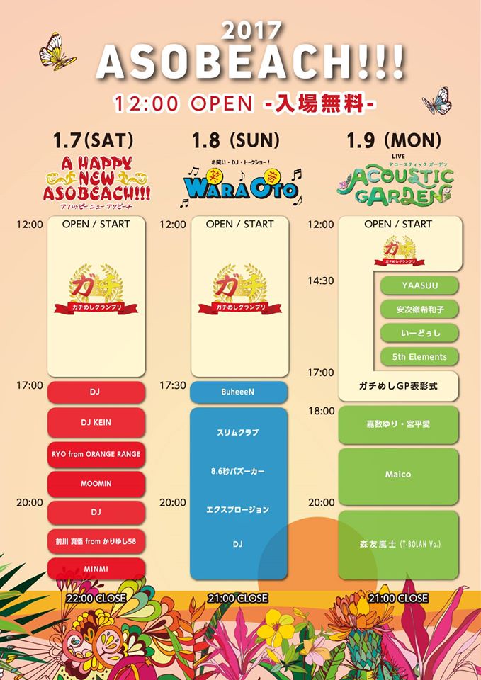 2017年1月7日(土)・8日(日)・9日(月・祝)・14日(土)・15日(日)ASOBEACH!!! OKINAWA 2017 / 那覇市・波の上うみそら公園